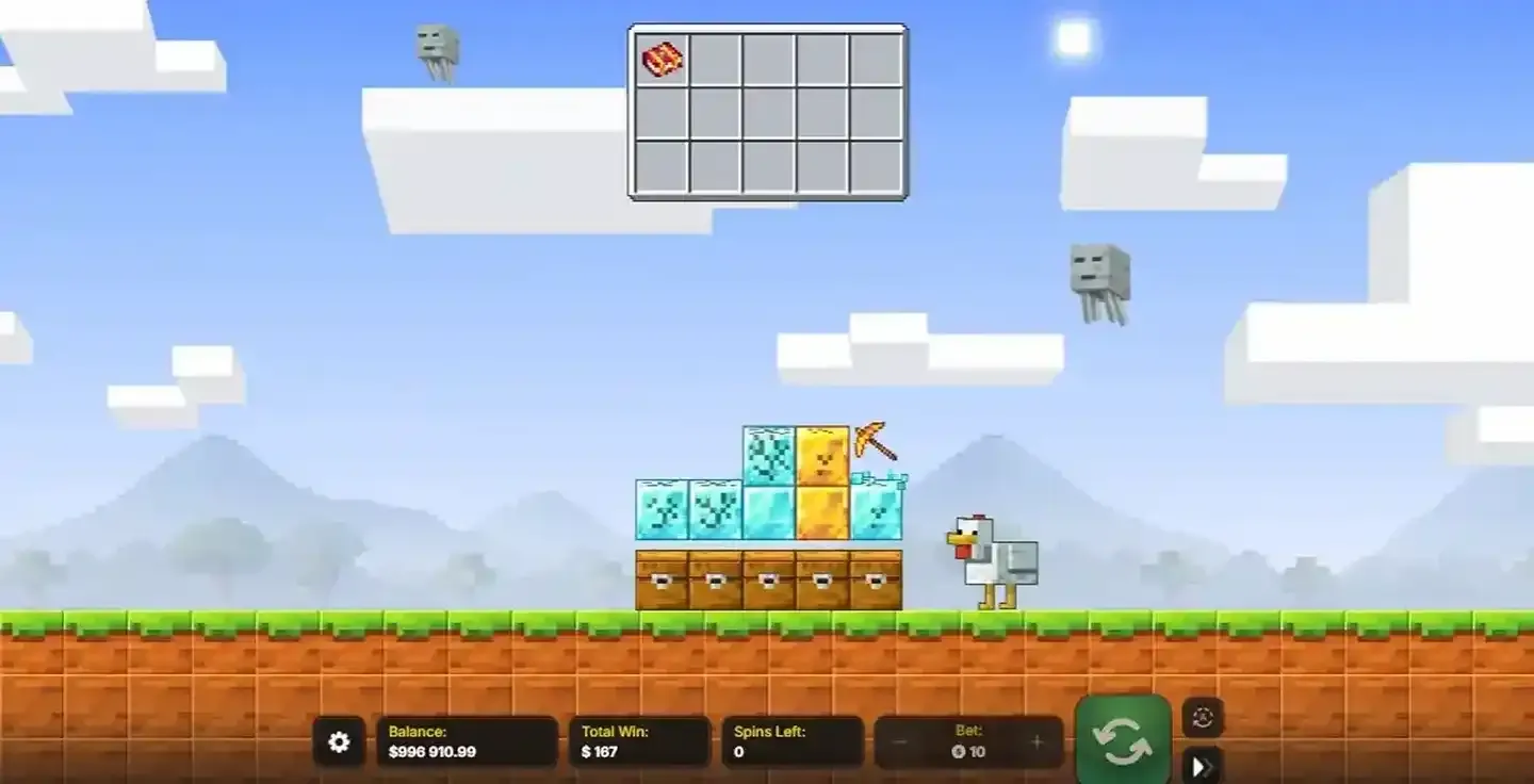 Il pulsante di visualizzazione rapida delle statistiche mostra informazioni dettagliate sulla sessione corrente, inclusi il numero totale di giri effettuati, l’importo totale scommesso e le vincite cumulative. Questi dati aiutano i giocatori a monitorare costantemente le proprie attività quando giocano a Minecraft slot online.